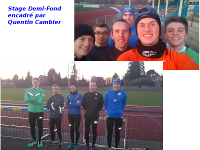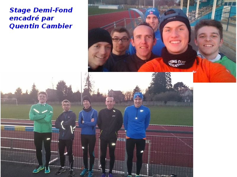 Le stage a commencé vendredi par une bonne mise en jambe pour annoncer la couleur, un bon footing avec des variations suivi de bondissements et de renforcement musculaire. Le samedi matin sous le vent et la pluie, une bonne séance de fartlek avec quelques côtes et un belle sortie longue l'aprem pour conclure la journée. Le dimanche, le froid était au rendez vous, les températures étaient négatives mais cela n'a pas empêché les athlètes de réaliser une séance de 10x(200/300) avec une PPG dans les jambes du matin pour clore le stage.