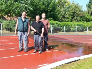 Dominique, Paul et Daniel ont entrepris de nettoyer la piste des lichens et crasses accumulés depuis de longues années.