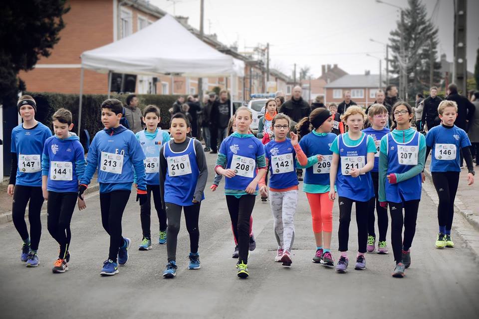 Carton plein pour les couleurs de l’Etoile chez les jeunes présents à la 9ème édition de « Courir à Courrières ». En poussins, Hugo Caron, toujours aux places d’honneur, termine premier et Elias Ramdani troisième après un match de foot le matin et avant une séance de piscine le soir. C’est beau le sport ! En catégorie poussines, Axelle Paternelle, habituée des podiums gagne l’épreuve juste devant Lilia Ould-Bouamama en constante progression. Emmie Paternelle se plaignant toujours d’une douleur à la jambe et Siham Ennassir toujours souffrante étaient absentes. Chez les benjamin(e)s, Noa Franconville domine la course de la tête et des épaules et Alexia Desse, en se classant troisième, suit les traces de sa maman.