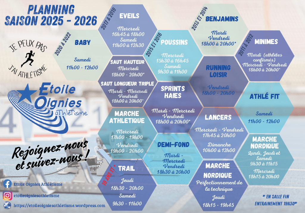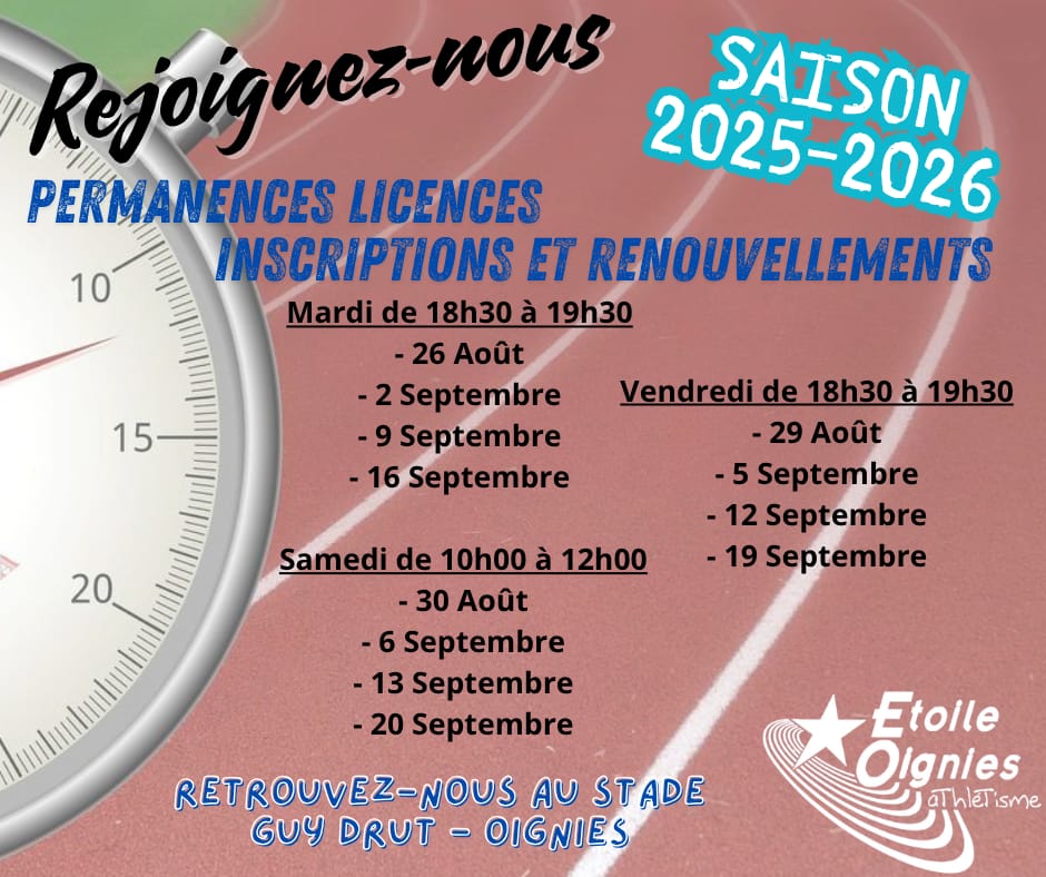 - Un chèque de cotisation à l’ordre de l’Étoile Oignies Athlétisme (tarifs ci-dessous)